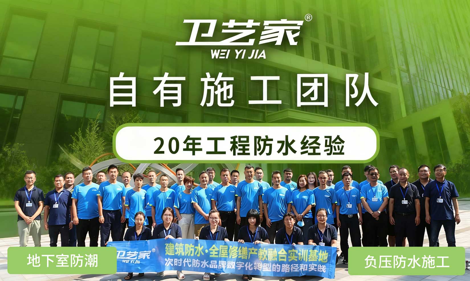 卫艺家防水,创始人专业防水服务20年,提供自贡负压防水施工等专业防水工程施工,自有施工团队,20年工程防水经验。卫艺家防水凭借创始人 20 年的专业积淀和国家高新技术企业的技术实力,以负压防水技术为核心,为各类建筑渗漏难题提供系统性解决方案。作为拥有二级防水施工资质、30 余项国家专利的正规企业,卫艺家已累计完成超 8000 个防水项目,从别墅地下室负压防水工程、大型建筑屋面防水到老旧小区平改坡防水工程,用 "背水面主动防渗" 的技术突破,重新定义了防水工程的标准。